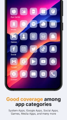 Ares Arctic focuses on the glassy, semi-transparent squircle trend: think frosted glass + iOS 26 styling + minimalist white glyphs. If you want a coherent, modern homescreen that looks like it belongs on a cutting-edge device — this pack nails it.