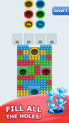 Empty the fronts to successfully fill the stickmen into the holes. Different colors blocks each other!