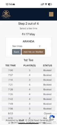 The app allows members to book golf flights, update your buddy lists and an overview of upcoming events.