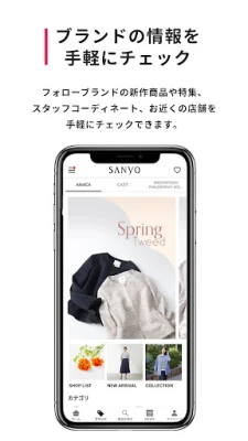 フォローしたブランドの商品やスタッフコーディネート、お近くの店舗を手軽にチェックできます。