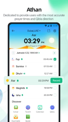 The Athan times are generated according to arithmetic methods adopted in most of the Islamic world. By automatically determining your location, this application can remind you of accurate prayer times as well as determine the direction of the Qibla.